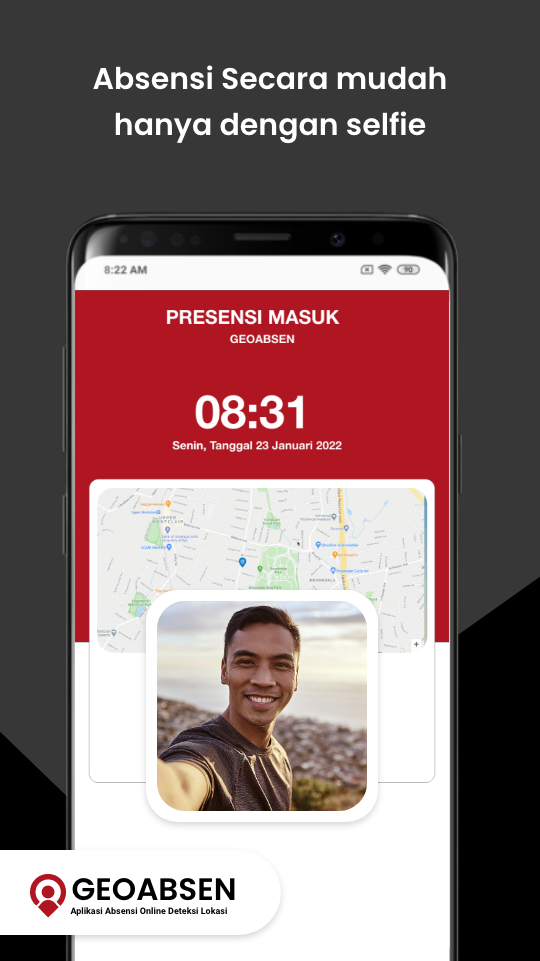 Fitur absensi dengan selfie memungkinkan karyawan melakukan pencatatan kehadiran dengan mengambil foto diri (selfie) langsung dari perangkat mereka. Foto yang diambil digunakan sebagai bukti kehadiran dan dapat dilengkapi dengan data waktu serta lokasi untuk memastikan absensi dilakukan secara valid dan akurat.